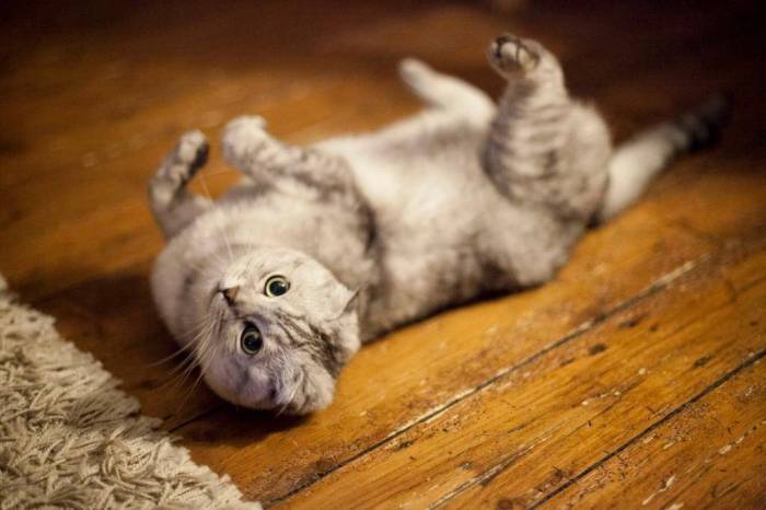 - кошка падает на бок;