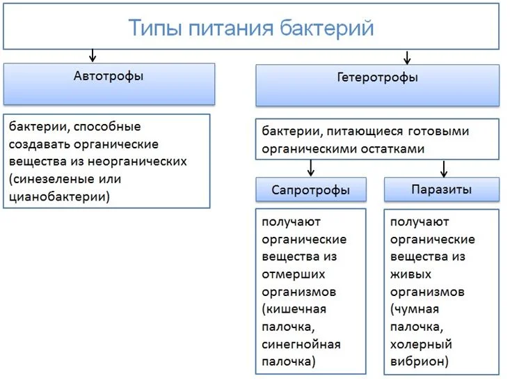 Прочие бактерии обитают в теле других организмов, поэтому их называют паразитами. Местом обитания может быть тело людей, животных, иногда растений. Для своего питания бактерии паразиты используют органические вещества из клеток живых существ. Бактерии паразиты вызывают у человека различные болезни. Примером бактерий паразитов может служить чумная палочка, вызывающая такое заболевание как чума.
